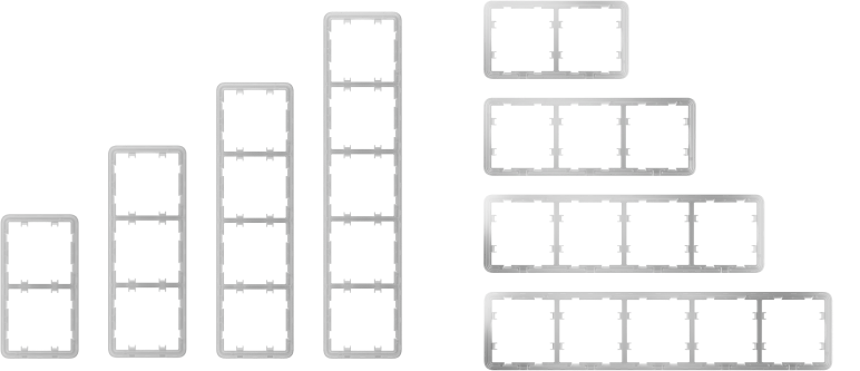 Un cadre en plastique pour l'installation côte à côte de 2 à 5 dispositifs à l'horizontale ou à la verticale